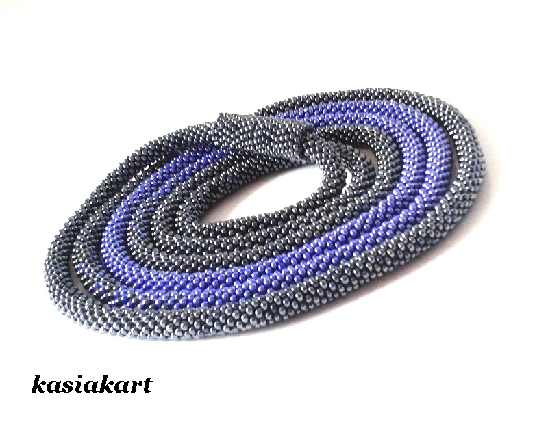 Kolejny lariat :) tym razem postawiłam na hematyt i royal blue :) Długość sznura to 142 cm, więc starczy na wymyślne zaplatańce i pomysłowe węzły :) Zapięcie magnetyczne ukryte w koralikowych końcówkach.