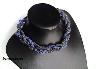 Były oczywiście też pozytywy: pierwszy raz oplatałam Rivoli tylko 11o (innego rozmiaru nie było w zestawie!!!), pierwszy raz do oplatania używałam taśmy cyrkoniowej i pierwszy raz wyplotłam tyle koralikowych kwiatków i to każdy inny. O kilometrach nici, połamanych igłach i godzinach spędzonych przy tej pracy już nie będę się rozwodzić. Generalnie cieszę się, że podołałam, zdążyłam na czas i - co było moim punktem honoru :) korzystałam tylko z tych materiałów, które otrzymałam w zestawie ( poza zapięciem:)). Ostateczny wynik tych zmagań możecie zobaczyć poniżej.